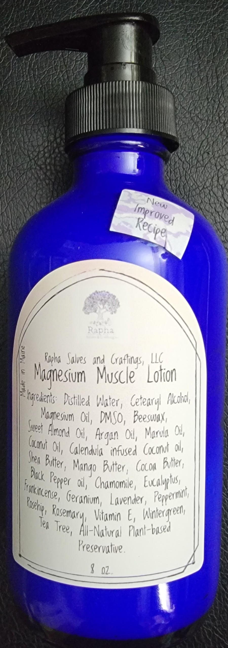 *New Improved Recipe* This lotion contains all the same ingredients as the last recipe: magnesium and all natural ingredients that get to the source of the soreness for most mild to moderate muscle soreness and achiness, but now has 99.995% Pharmaceutical Grade DMSO (Dimethyl Sulfoxide) and wintergreen essential oil added. Though it sounds like a man made chemical, DMSO is actually a natural chemical made by trees and a natural byproduct of the wood pulping process. It contains its own healing properties and helps to pull the healing properties of the other ingredients in the lotion into and through the skin barrier faster and more efficiently. This lotion helps to calm muscles after a charley horse or over-extension, muscle aches and pains, and it has also been used on the back of the neck or the bottoms of the feet to facilitate sleep. *Caution – if using on bottoms of feet, it is advisable to either wear socks or slippers if you're going to get up and walk around after putting this on your feet as it will make your feet slippery and may result in a fall.* As with all my products, this lotion is made with all-natural ingredients, ethically sourced, and non-GMO. *Note – This lotion contains beeswax.
